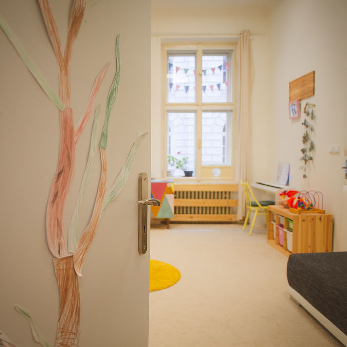 Dům pod hradbami spojuje útulný interiér s dvorem pod stromy – ideální pro hru, tvoření i společné chvíle.